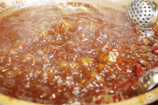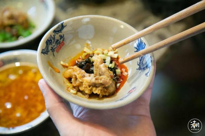 涮鹅肠,讲究一个7上8下。手腕在空中甩动,双眼盯紧微妙的色泽变化,多一秒就会错过鹅肠的巅峰口感。