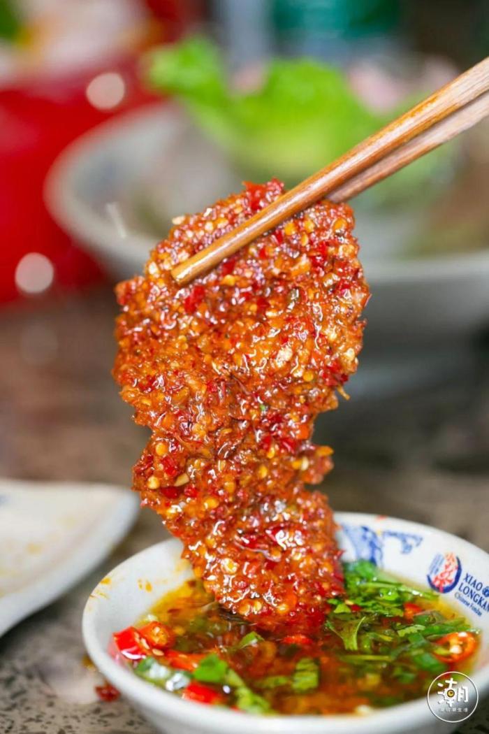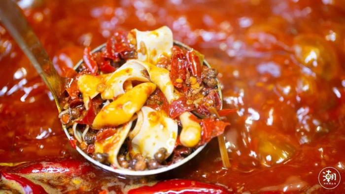 在红油锅里煮过的霸王牛肉,更加爆炸,红彤彤的辣椒包裹着牛肉片,看着就不禁开始咽口水。